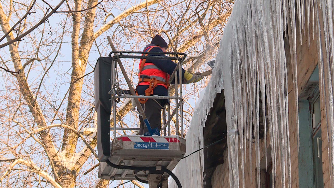 сбивание сосулек, убираем наледь